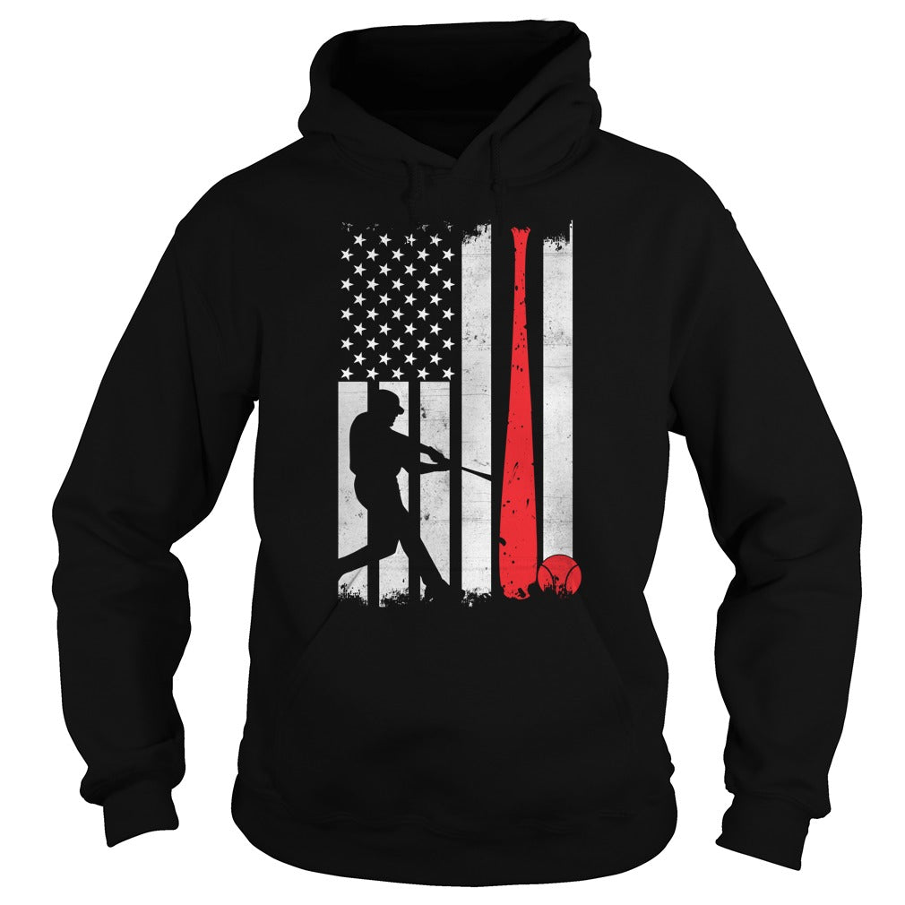 This US Flag Baseball Hoodie is made of soft 50/50 cotton/poly fabric and double-needle stitching for lasting durability. The double-lined hood with drawcord provides extra warmth, while the front pouch pocket is perfect for storing essentials. Recycled, high-performing black tear-away label included.